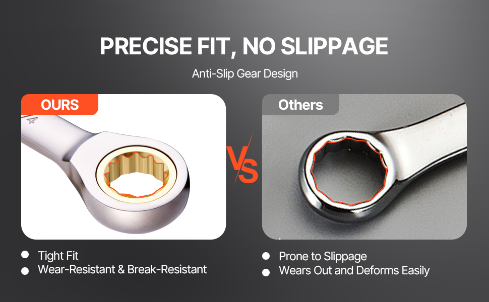 Yhdistelmälenkkiavainten liukumaesta vähemmän herkkä hammastus vähentää lipsumista ja säästää voimaa, mikä tekee työskentelystä sujuvampaa ja tehokkaampaa.