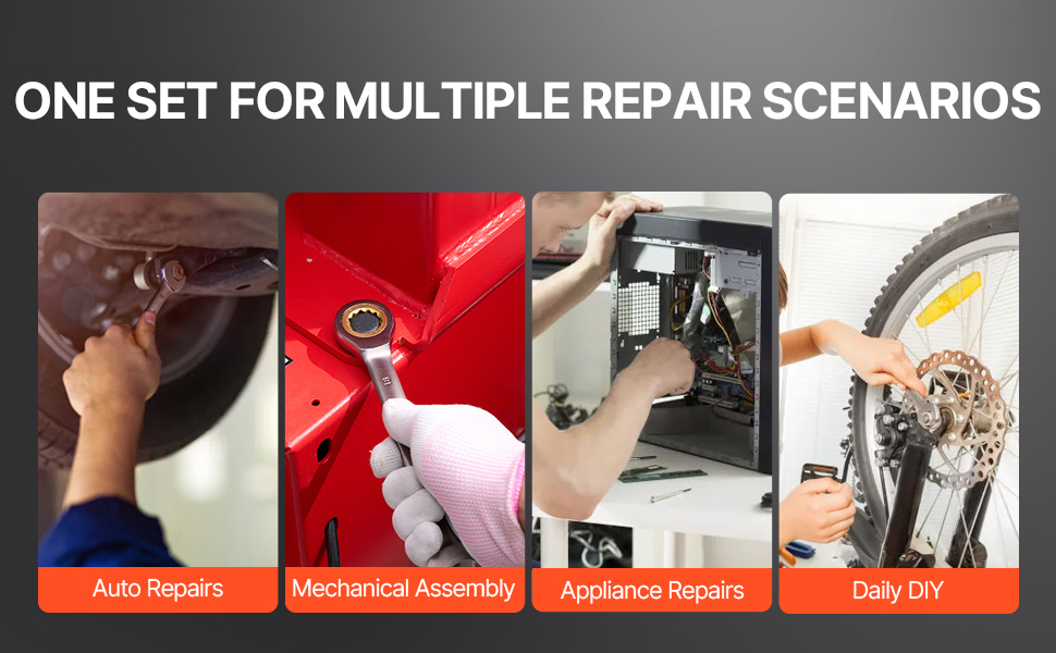 Tämä voimaa säästävä räikkälenkkiavainsarja sopii hyvin esimerkiksi ajoneuvojen huoltoon, koneiden kunnossapitoon ja erilaisiin kotitalouden korjaustöihin.