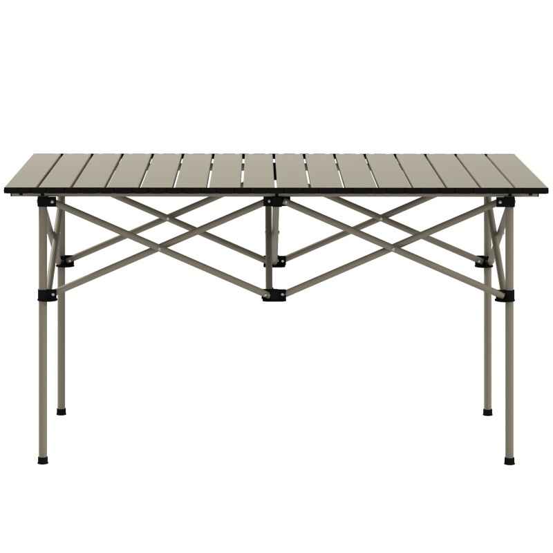 Tämä kahdelle hengelle mitoitettu alumiininen retki- ja puutarhapöytä tarjoaa aina oman ruokailu- ja oleskelupaikan, olit sitten leirintäalueella, terassilla tai piknikillä. Pöydän kannen voi rullata kokoon ja jalat taittuvat, joten se on nopea koota ja vie vain vähän tilaa säilytyksessä ja kuljetuksessa. Mukana tuleva kantokassi helpottaa mukaan pakkaamista, ja tukeva X-runkorakenne pitää pöydän vakaana erilaisilla alustoilla.