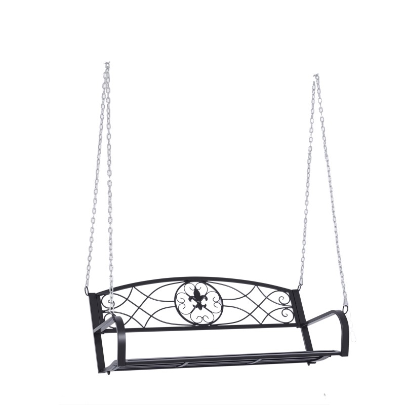 Nauti rauhallisista kesäilloista ja arjen tauoista tyylikkäällä kahden hengen riippupenkillä. Tukeva, musta metallirunko, selkänojan koristeellinen liljakuvio ja miellyttävän leveä istuin tekevät tästä penkistä viihtyisän paikan puutarhaan, terassille tai parvekkeelle.