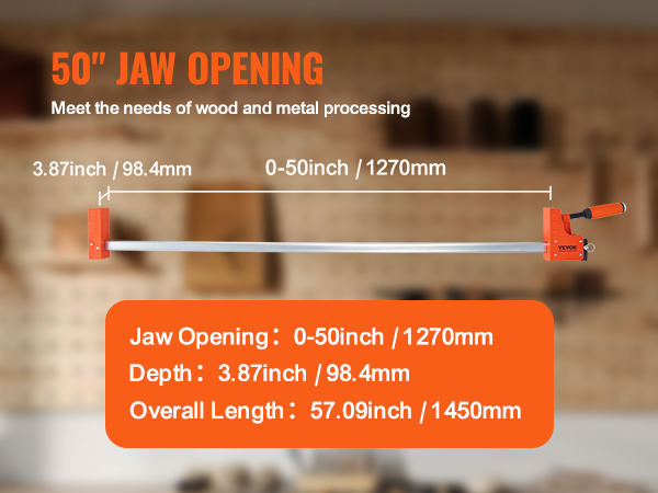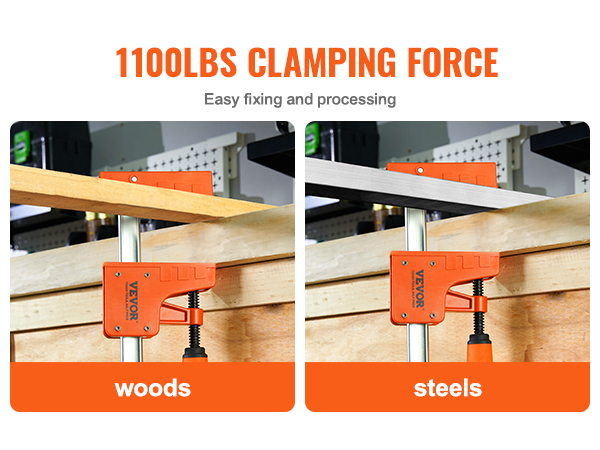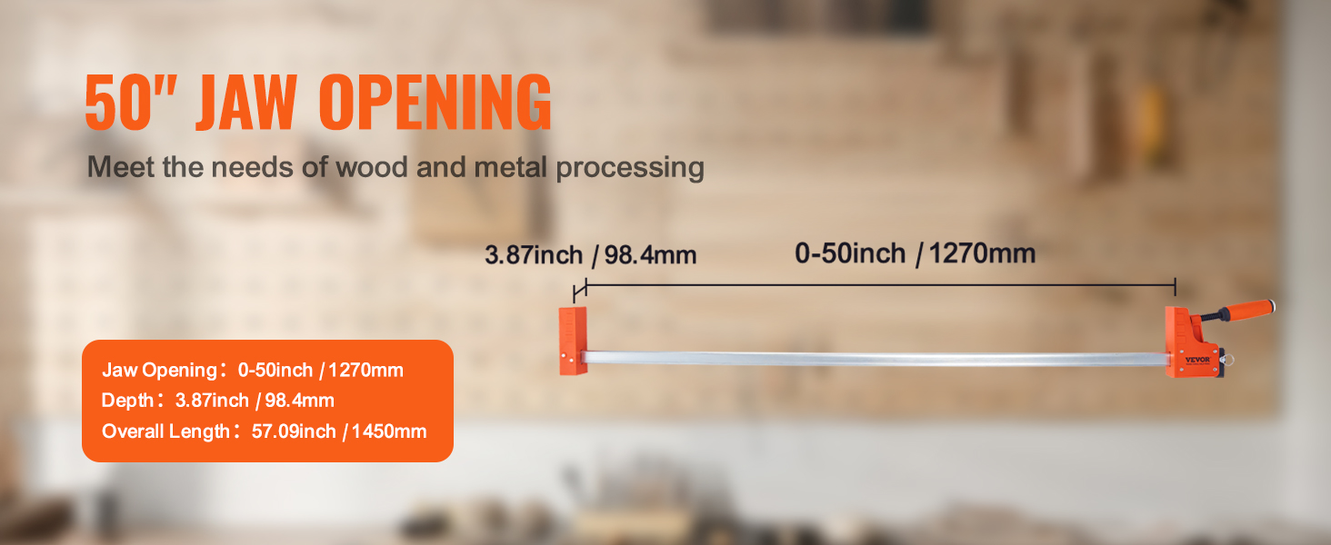 Pitkät puristimet, joiden leukojen avautuma on 0-1270mm, soveltuvat useimpiin puu- ja metallityökohteisiin. Suuri avautuma helpottaa kappaleiden tarkkaa asettelua ja kohdistusta työstön aikana.