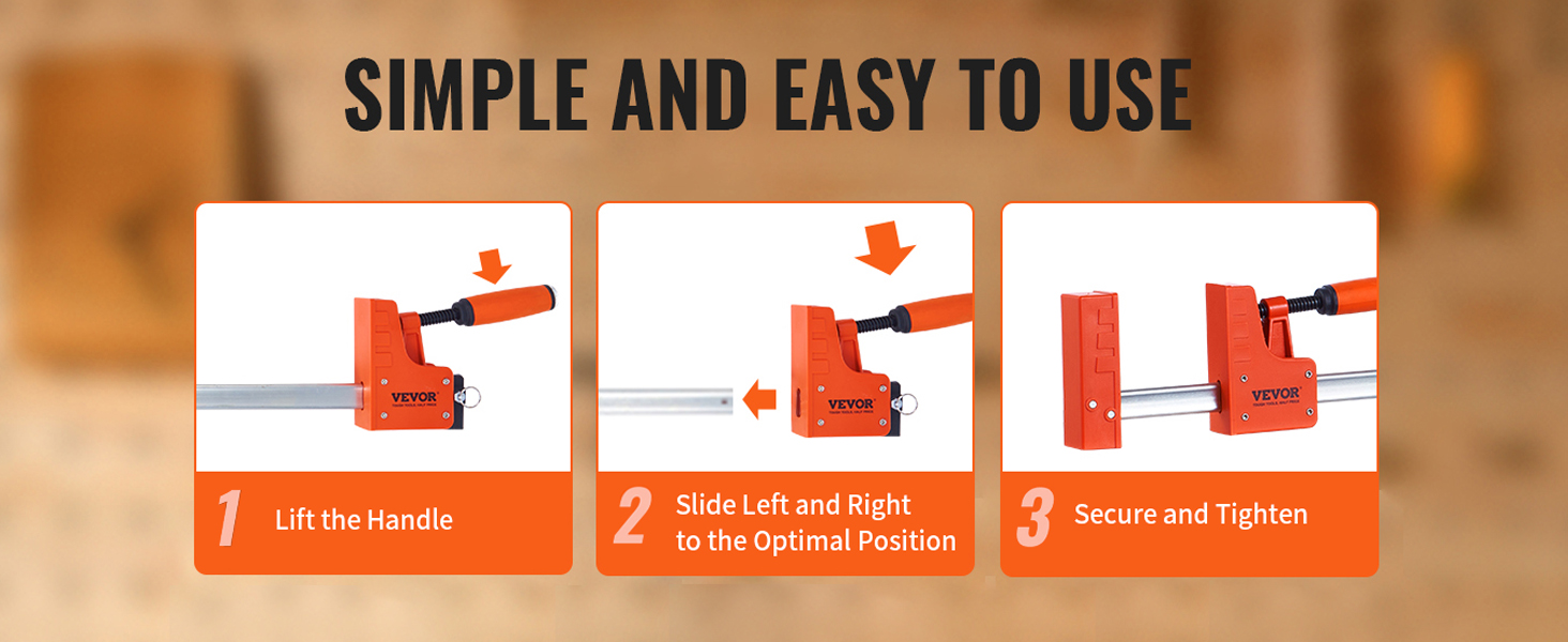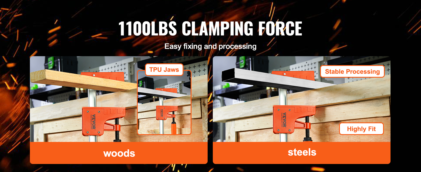 Vahva, jopa 1100lbs puristusvoima mahdollistaa erilaiset puusepäntyöt, kuten pöytien, tuolien ja kaappien liimaukset ja kokoonpanot, sekä esimerkiksi teräskappaleiden kiinnityksen. Rinnakkaiset puristinleuat auttavat saamaan liitoksista tasaiset ja tiiviit.