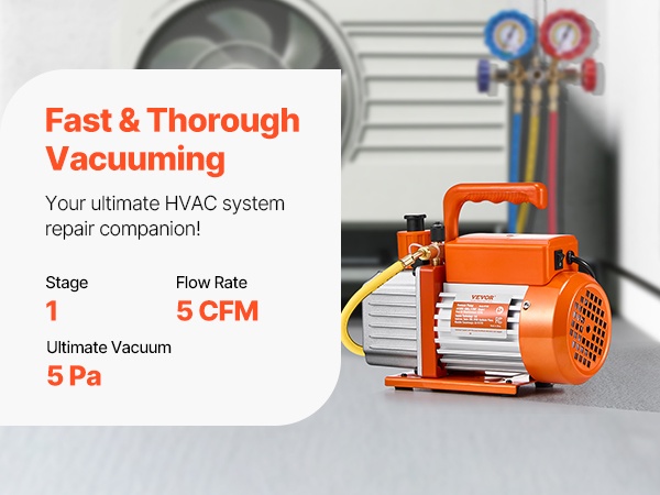 Tämä 2-vaiheinen 6 CFM roottorisiipipumppu on suunniteltu erityisesti ilmastointi- ja kylmäainejärjestelmien tyhjennykseen, kuten R22-, R134a- ja R410a-järjestelmille. Se soveltuu auton ilmastoinnin huoltoon, pienempiin kotitalouksien HVAC-järjestelmiin sekä muihin tyhjöä vaativiin tehtäviin, kuten hartsin alipaineistukseen.Tärkeimmät ominaisuudet: