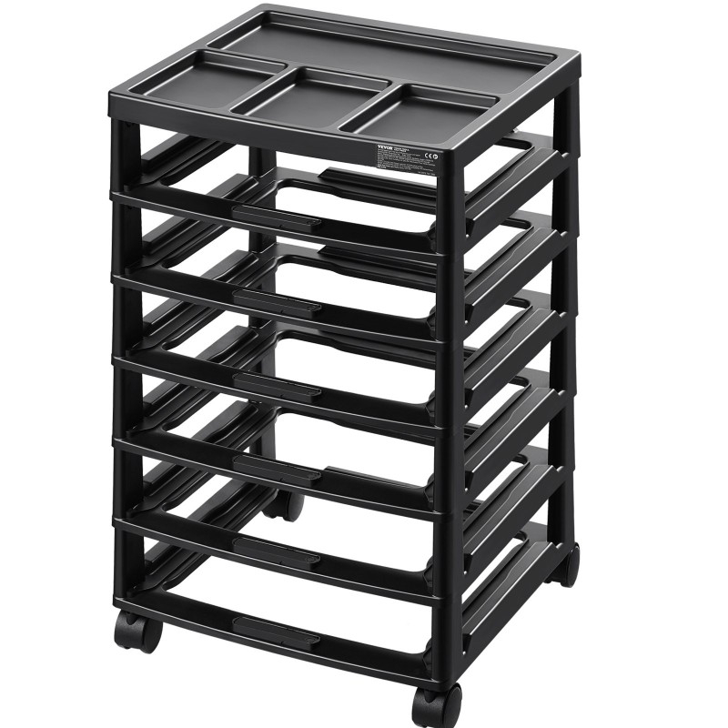 Rullaava säilytyskärry 6-tasoinen organizer-ylätasolla musta PP-muovi askartelu- ja toimistotarvikkeille