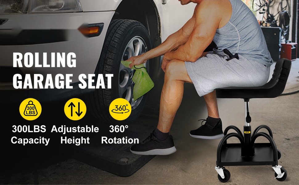 Rullaava korjaamotuoli teräsrunko pehmustettu istuin säilytyslokerolla säädettävä korkeus 685–805 mm