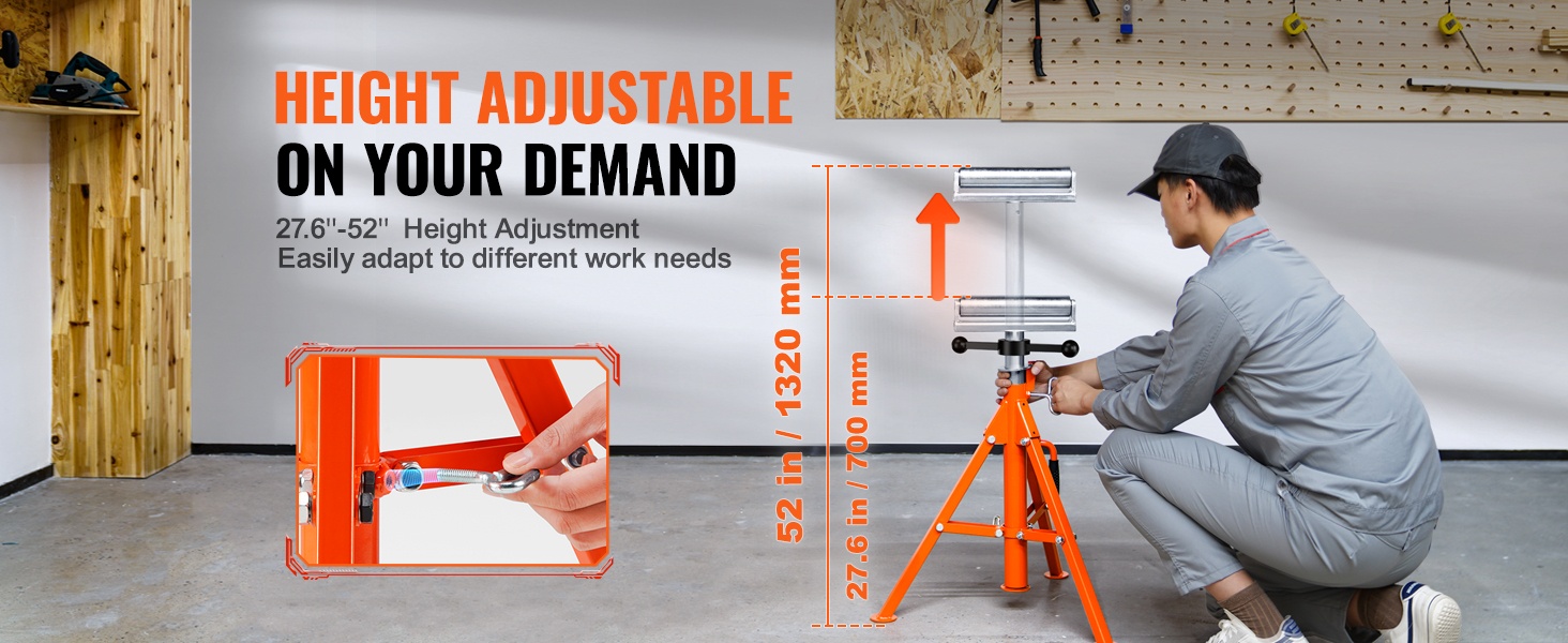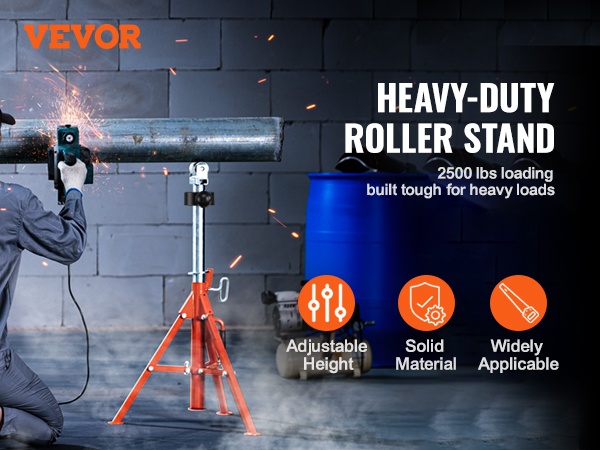 Rullateline 45-teräksestä 1134 kg kantavuus 700–1320 mm korkeussäädettävä putkille ja puulevyille