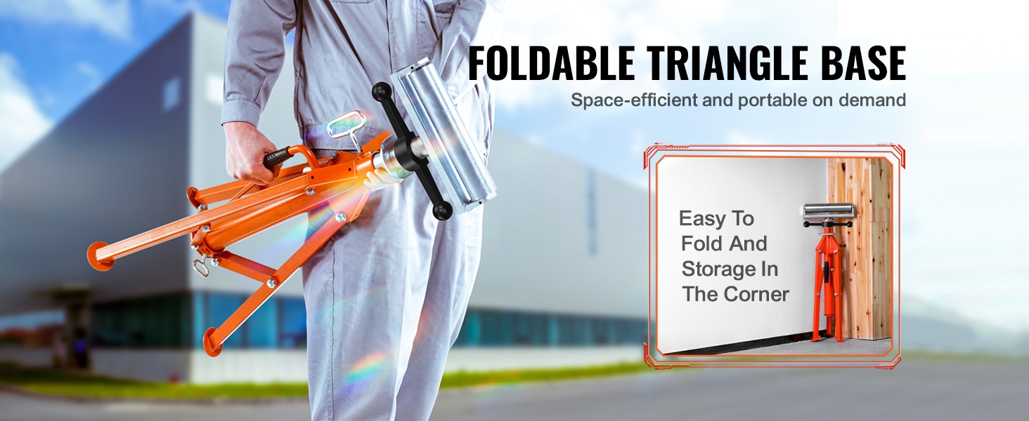 Kolmionmuotoinen jalusta on irrotettava ja taitettava, joten teline on helppo varastoida, kun sitä ei käytetä. Kompakti koko säästää tilaa työpajassa tai varastossa.