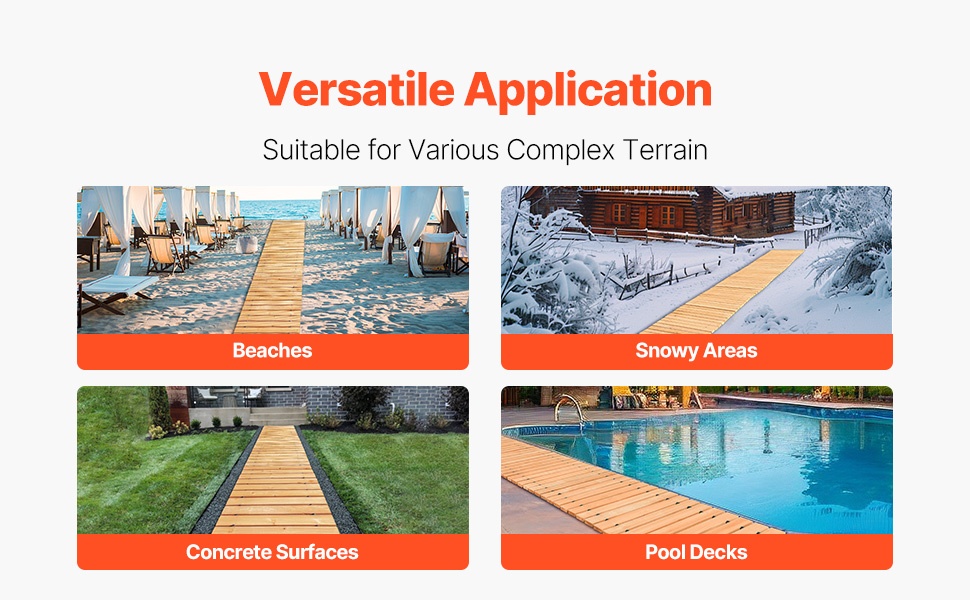 Polku toimii monenlaisilla alustoilla, kuten hiekalla, lumella ja soralla, tarjoten siistin ja vakaan kävelyreitin esimerkiksi puutarhan kulkuteille, takapihan laitureille, juhlien ja häiden kulkureiteille tai mökkiympäristöön.
