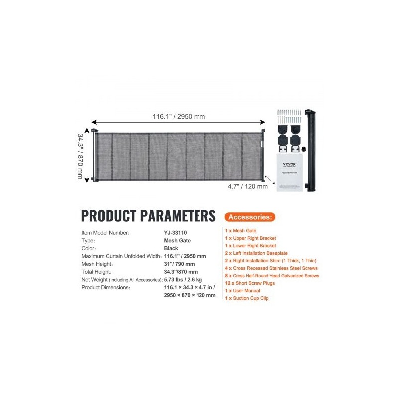 Rullautuva verkkoportti auttaa rajaamaan tilaa lapsille ja lemmikeille sisätiloissa. Portti on korkeudeltaan 86.9 cm ja se voidaan pidentää jopa 294.9 cm leveyteen, joten se sopii monenlaisiin oviaukkoihin, käytäviin, portaisiin ja leikkihuoneisiin. Verkko rullautuu sivuun, kun porttia ei tarvita, jolloin kulkuaukko jää täysin vapaaksi.