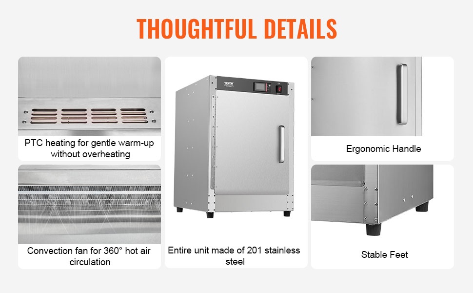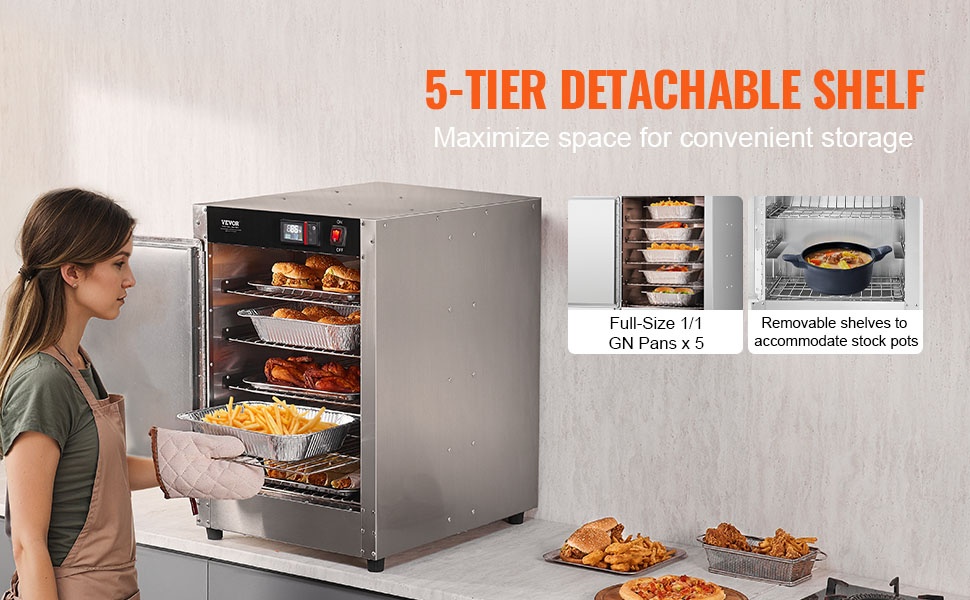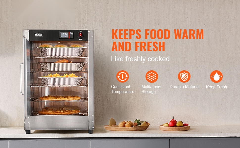 Tämä ruoanlämmityskaappi pitää ruoat tasaisen lämpiminä ja mehukkaina ilman kuivumista. Tuotteet näyttävät ja tuntuvat vastavalmistetuilta, mikä sopii hyvin esimerkiksi pizzalle, paistetulle kanalle, hampurilaisille ja leivonnaisille.