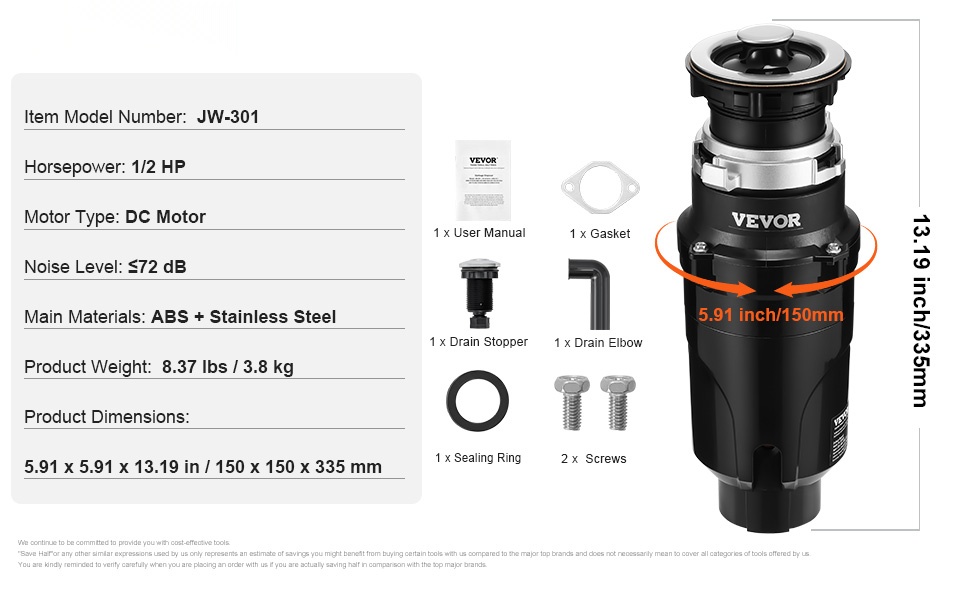 Tehokas 1.25 HP DC-moottori pyörii nopeudella 4060 RPM ja murskaa vaivatta vaativammankin ruokajätteen. Näin keittiö pysyy siistinä ja hajuttomana ilman pitkiä käsittelyvaiheita.