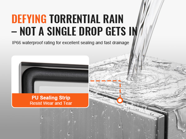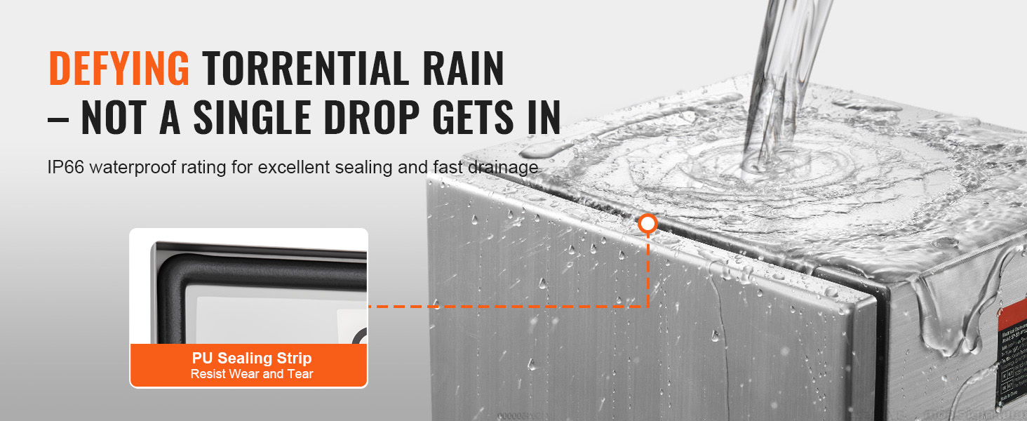 Kannen PU-tiivistenauha muodostaa tiiviin sulun ja estää veden ja pölyn tunkeutumisen kotelon sisään. Rakenne ohjaa sadeveden tehokkaasti ulos, mikä auttaa saavuttamaan IP66-vesi- ja pölysuojausluokituksen.