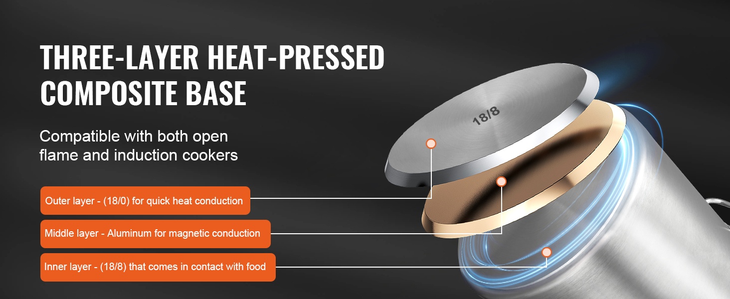 Kattilan pohjaan on lisätty magneettinen, hyvin lämpöä johtava alumiinilevy. Tämä parantaa lämmön jakautumista, tehostaa kypsennystä ja tekee kattilasta yhteensopivan induktioliesien kanssa.