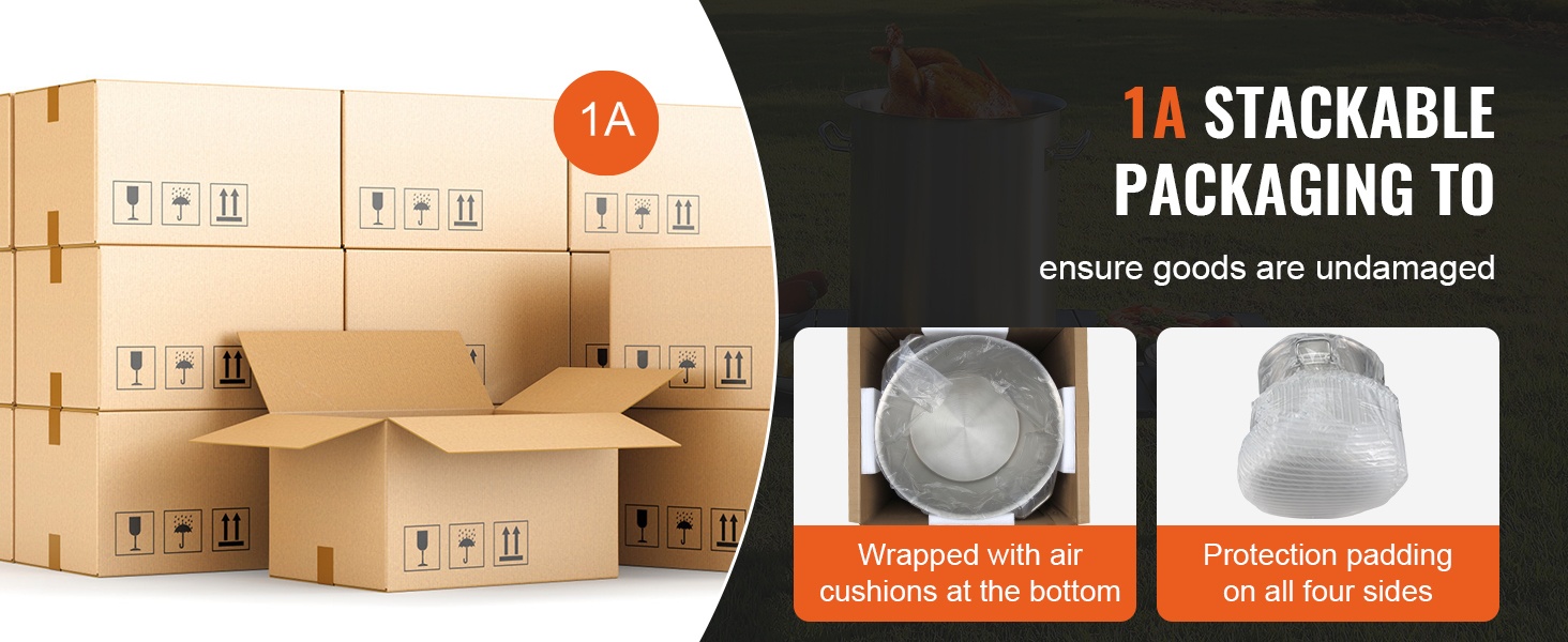 Kattila toimitetaan korkealuokkaisessa, pinottavassa pakkauksessa, jossa on huomioitu ulkopakkauksen kunto ja pudotustestit. Tämä auttaa varmistamaan, että tuote saapuu perille ehjänä.