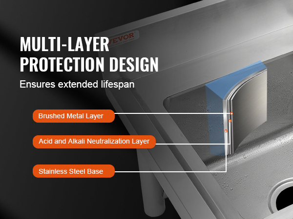 Allas on valmistettu laadukkaista ruostumattoman teräksen levyistä, jotka on muotoiltu yhtenäiseksi rakenteeksi. Tämä vähentää saumojen määrää ja pienentää vuotoriskiä. Monikerroksinen suojapinta kestää kulutusta ja korroosiota, minkä ansiosta allas soveltuu myös ulko- tai puolilämpimiin tiloihin.
