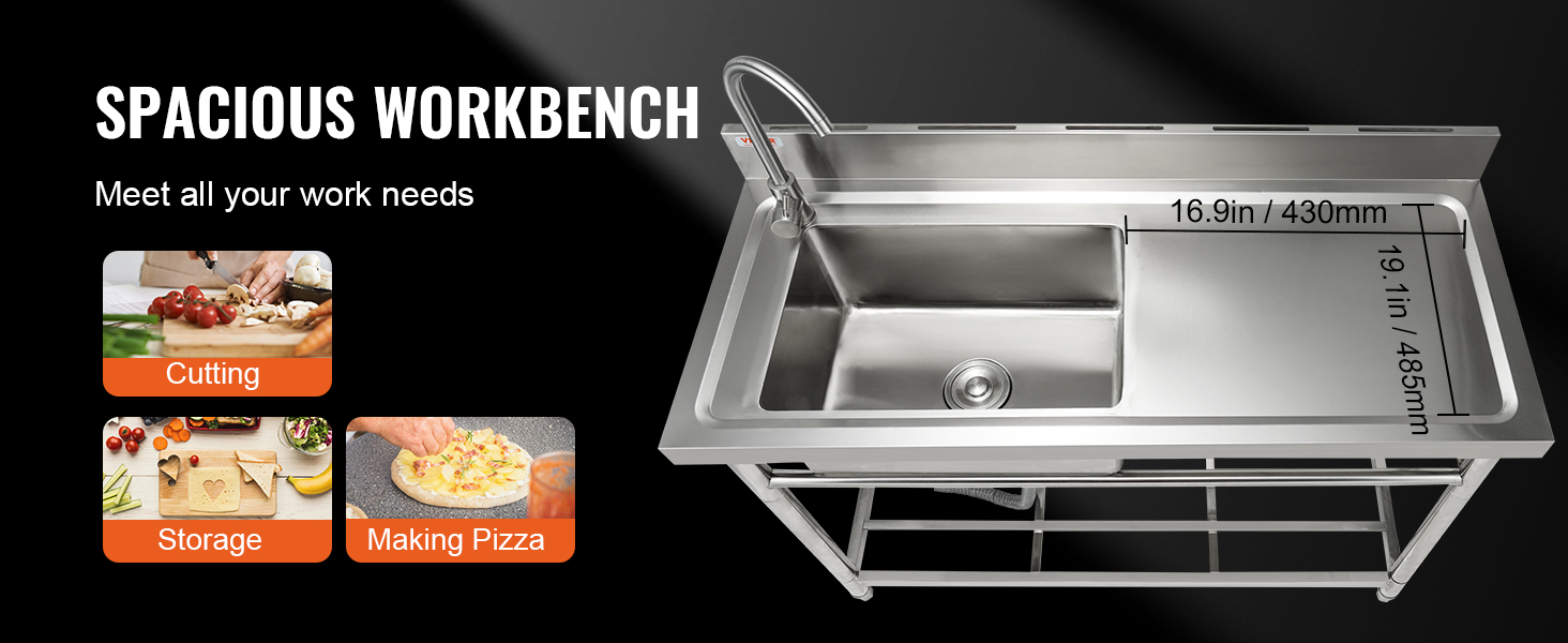 Tämä vapaasti seisova ruostumattomasta teräksestä valmistettu hyötyallas tarjoaa syvän ja tilavan altaan sekä käytännöllisen työtason esimerkiksi autotalliin, ravintolaan, pesutupaan tai työpisteelle. Kestävä rakenne, tiivis allas ja joustava viemäriputki tekevät päivittäisestä puhdistuksesta sujuvaa niin kotona kuin ammattikäytössä.