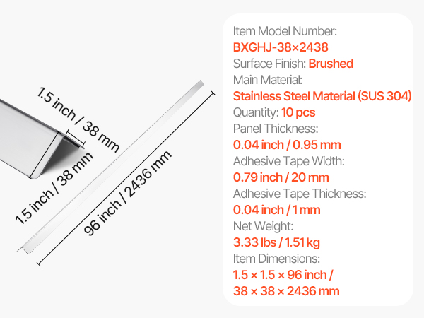 Suojan mitat ovat 38 × 38 × 2436 mm, ja 90 ° kulma sopii tavallisiin seinänkulmiin.