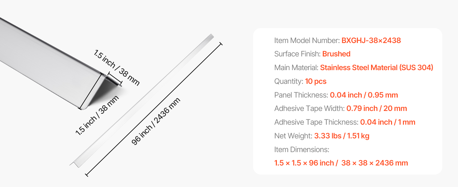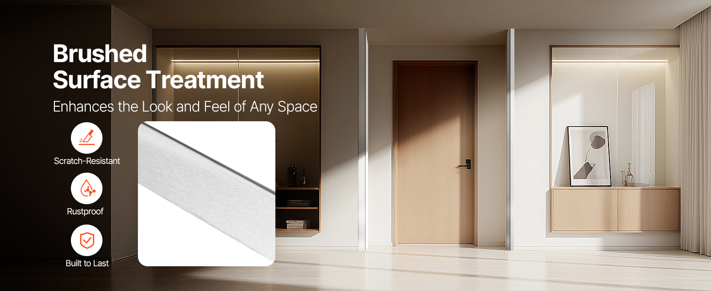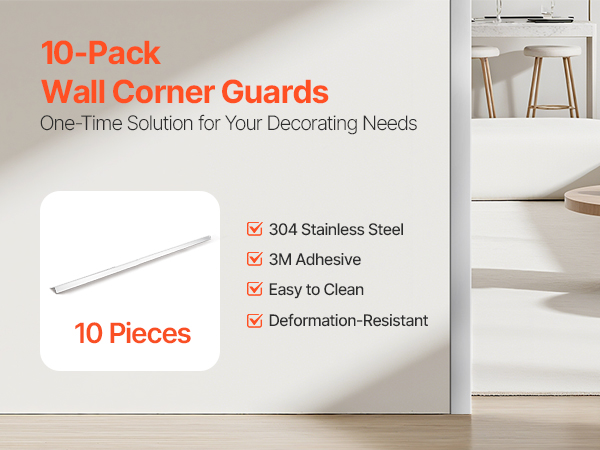 Tämä metallinen seinän kulmasuoja suojaa tehokkaasti nurkkia kolhuilta ja kulumiselta sekä tuo siistin, huomaamattoman viimeistelyn kotiin, toimistoon tai julkisiin tiloihin. Suojat on valmistettu kestävästä 304-ruostumattomasta teräksestä, ja niiden 90 asteen kulma sopii tavallisiin seinänurkkiin. Esiasennettu 3M-teippi helpottaa kiinnitystä ilman poraamista.