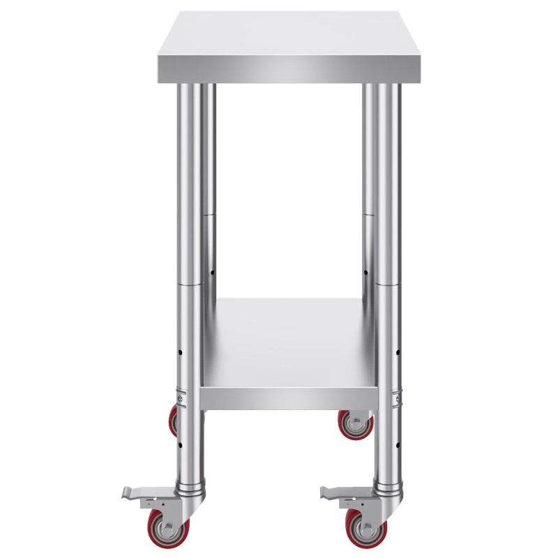 Tämä ruostumattomasta teräksestä valmistettu työpöytä sopii sekä ammattikeittiöön, ravintolaan että kotikeittiöön ja autotalliin. Kestävä rakenne, säädettävä korkeus ja pyörät tekevät siitä monipuolisen työpinnan ruoanvalmistukseen, säilytykseen ja yleiseen työskentelyyn.