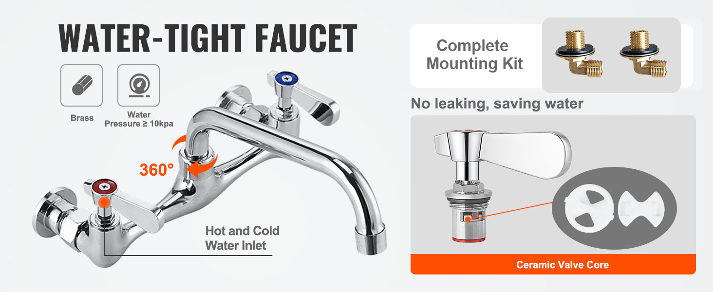 Hanan keraaminen venttiili vähentää vuotojen riskiä ja auttaa säästämään vettä. 360° kääntyvä hana tekee altaan käytöstä joustavaa esimerkiksi ruoan esivalmistelussa ja astioiden pesussa. Korkea roiskesuoja vähentää vesiroiskeita seinälle ja ympäristöön.