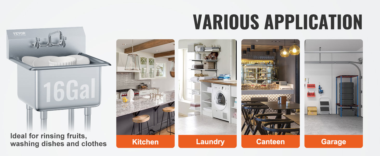 Ruostumattomasta teräksestä valmistettu allas kestää hyvin kosteutta ja kulutusta. Tukeva runko ja säädettävät jalkojen säätöpalat pitävät altaan vakaana ja auttavat suojaamaan lattiaa naarmuilta. Allas soveltuu käsienpesuun, työkalujen ja astioiden pesuun, ämpärien täyttämiseen sekä pyykin liotukseen.