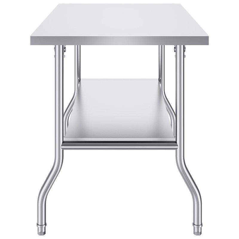 Kaksitasoinen ruostumaton teräs työpöytä ja laitealusta 152x76x61 cm säädettävällä alahyllyllä