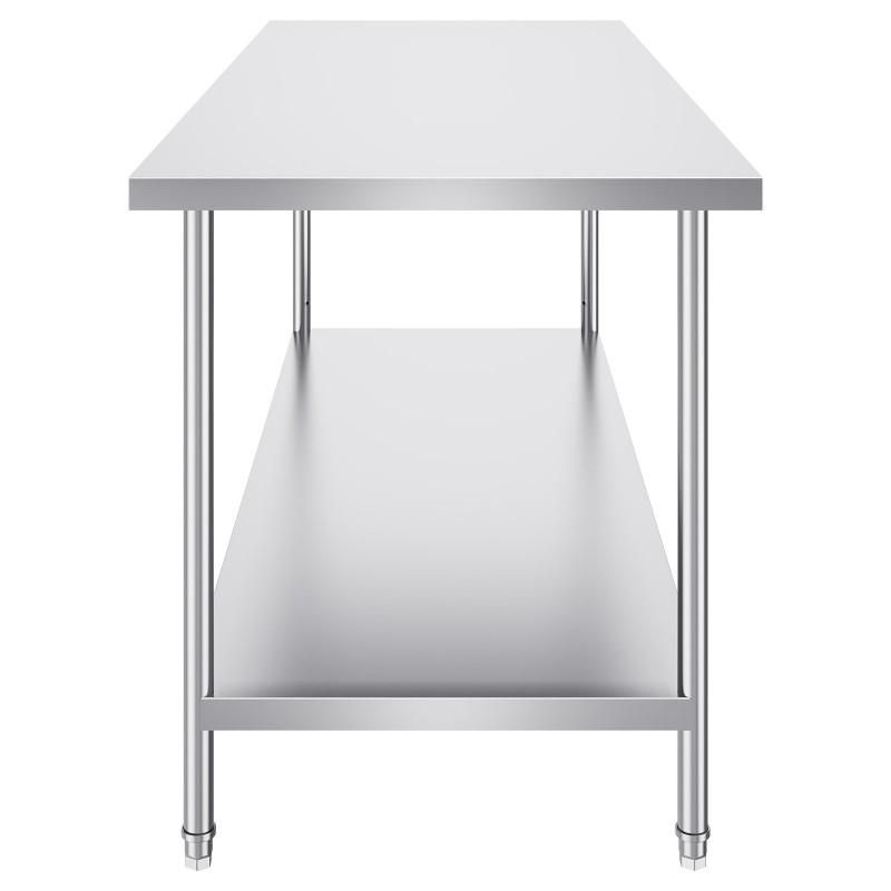 Ruostumattomasta teräksestä valmistettu työpöytä vaativiin kohteisiin, kuten keittiöön, autotalliin, ravintolaan tai pihalle. Tukeva rakenne ja säädettävä hylly tekevät siitä käytännöllisen valinnan sekä ammatti- että kotikäyttöön.