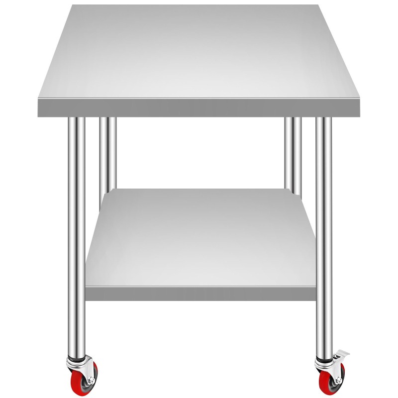 Säädettävä alataso, tukevat pyörät ja vankka rakenne tekevät tästä ruostumattomasta teräksestä valmistetusta työpöydästä käytännöllisen ratkaisun ammattikeittiöihin, kotikeittiöön, varastoon tai autotalliin.