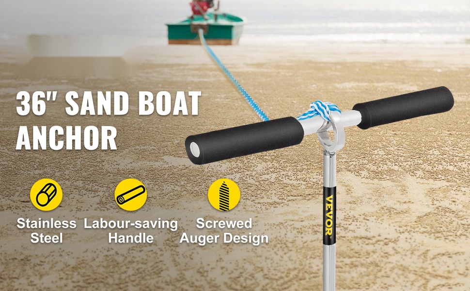 Tämä 36" hiekkanaanteri pitää vesikulkuneuvosi tukevasti paikallaan hiekalla ja matalikolla. Terävä kierreterä ruuvautuu hiekkaan ja tarjoaa vahvan pidon enintään 25 jalan veneille, vesijeteille, ponttooniveneille ja kajakeille. Kestävä 316 ruostumaton teräs kestää meri-, järvi- ja jokiveden ilman ruostumista, ja irrotettava vaahtomuovikahva tekee asennuksesta nopean ja miellyttävän.