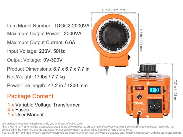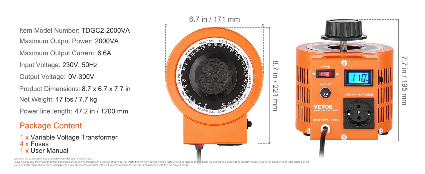 Tämä säädettävä jännitemuuntaja tarjoaa 0–300V jännitealueen helppoon ja tarkkaan säätöön. Laitteessa on LCD-näyttö, lämpötilansäädin, ylikuormitussuojain, 4 varasulaketta sekä kestävä metallikotelo. Soveltuu kotiin, toimistoon ja teollisuuskäyttöön, kun tarvitaan vakaata vaihtojännitettä.
