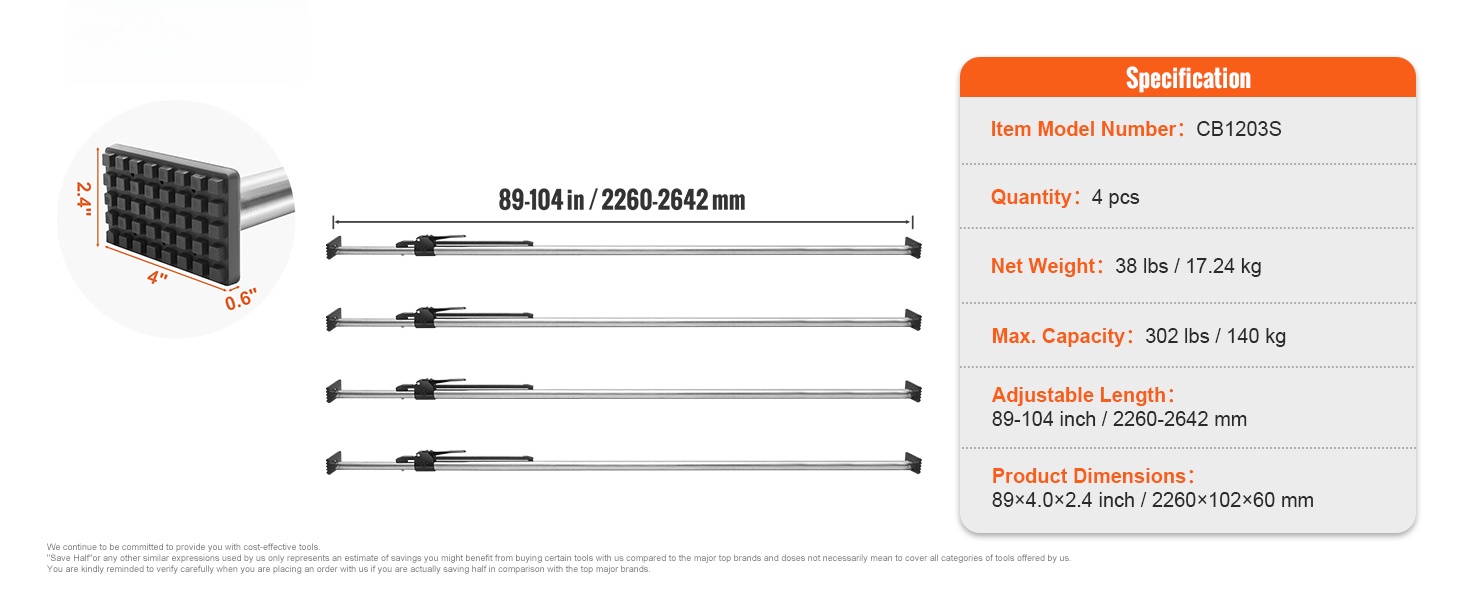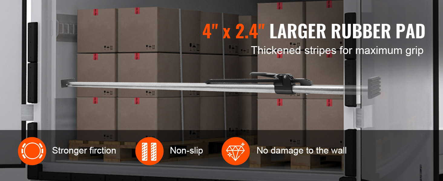 Kuormatangon molemmissa päissä on kumipehmusteet kooltaan 4×2.4 tuumaa. Ne tarjoavat erinomaisen liukuestopidon ja pysyvät hyvin paikoillaan myös märällä pinnalla tai epätasaisella tiellä tärinän aikana.