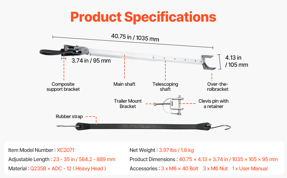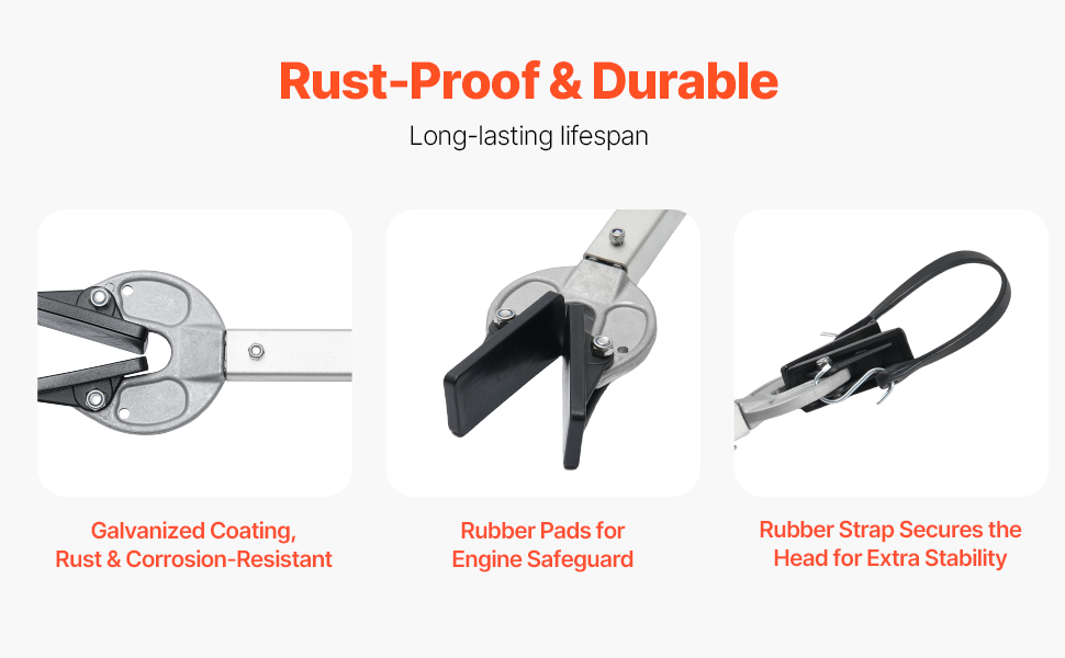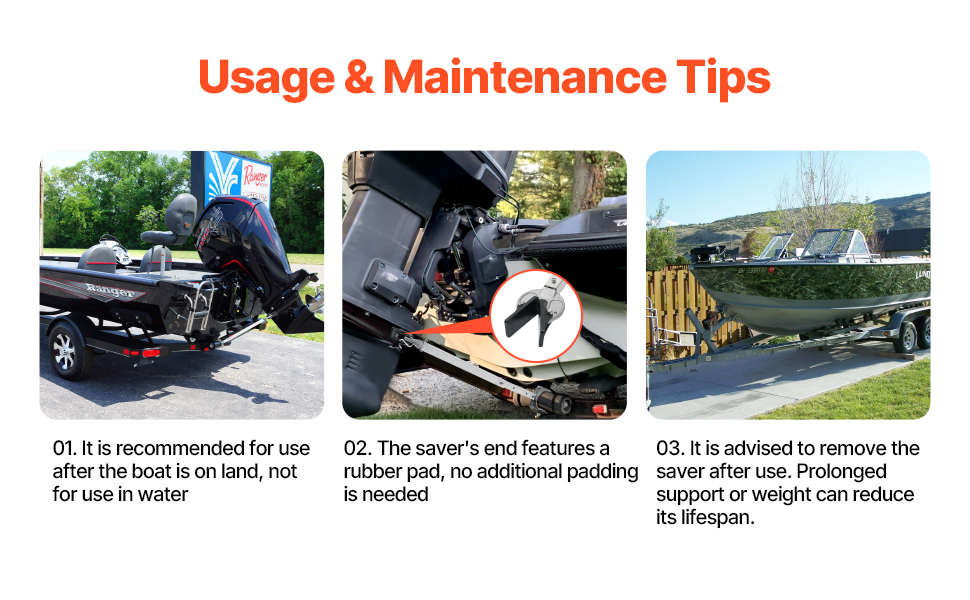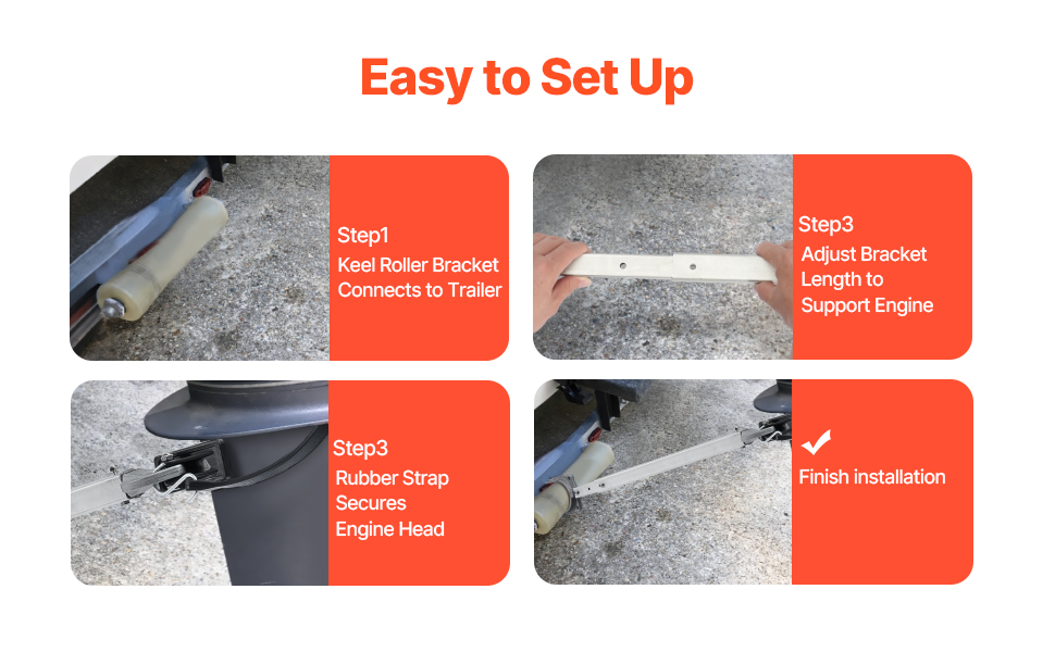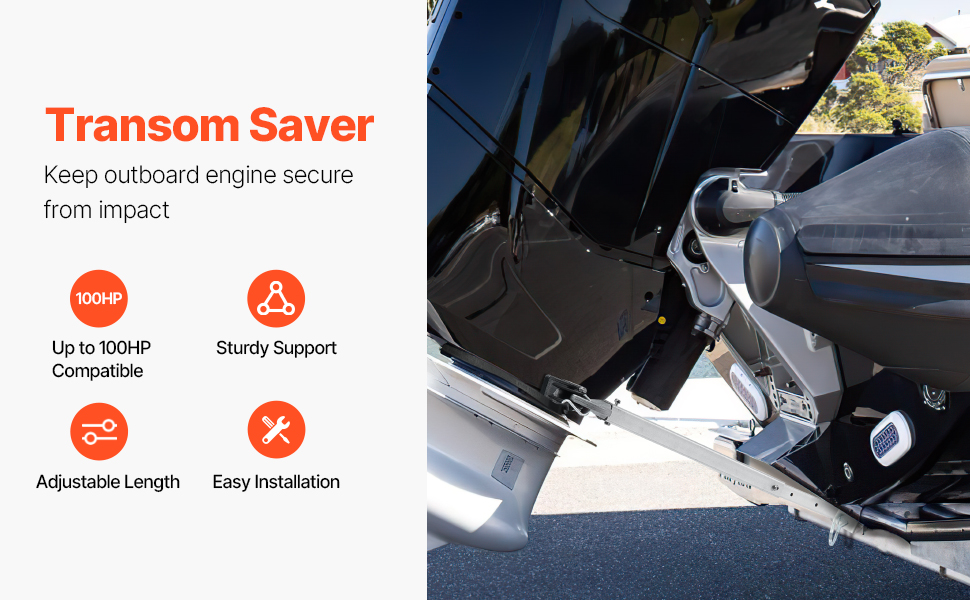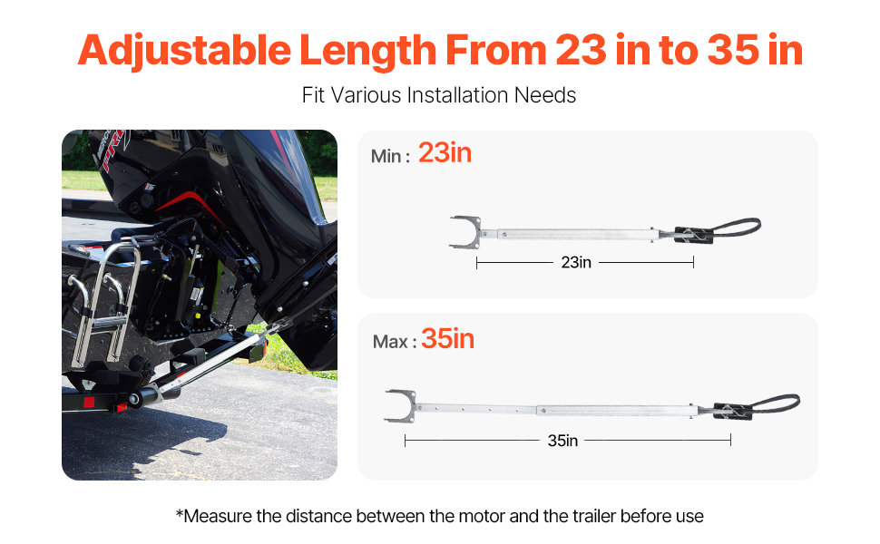 Säädettävän pituuden ansiosta tuki on yhteensopiva monentyyppisten perävaunujen kanssa. Pituuden säätö mahdollistaa yksilöllisen istuvuuden, jolloin moottori ja vene pysyvät tukevasti paikoillaan kuljetuksen aikana.