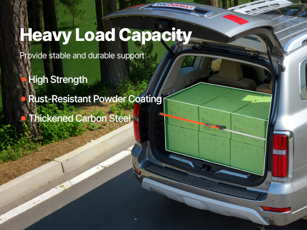 Räikkätoiminen rahtitanko pitää kuorman tukevasti paikoillaan, vähentäen liikkumista ja iskuja kuljetuksen aikana. Se auttaa suojaamaan tavaroita ja auton sisätiloja.