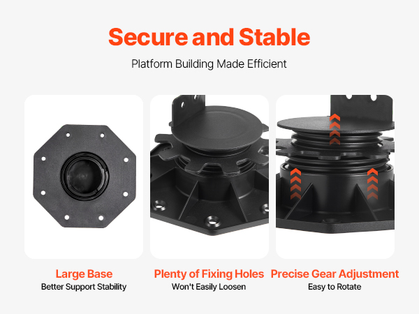 Perustajalan suuri pohjalevy parantaa vakautta, ja useat ankkurointireiät ehkäisevät löystymistä. Sisäänrakennettu hammasratas-säätö mahdollistaa tarkan korkeudensäädön yksinkertaisella kiertoliikkeellä, mikä helpottaa turvallista ja tehokasta asennusta.