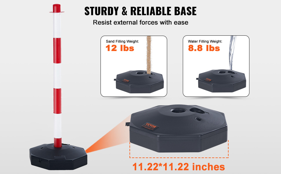 Liikenteen ohjaustolpassa on tukeva, (285 x 285 mm) kokoinen pohja. Tolpan painoa voi lisätä täyttämällä pohjan vedellä (4 kg) tai hiekalla (5.4 kg), mikä parantaa vakautta tuulisissa ja vilkkaissa olosuhteissa.