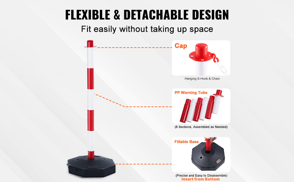 Jokainen tolppa koostuu 3 punaisesta ja valkoisesta tai mustasta ja keltaisesta putkiosasta. Putkien määrää muuttamalla tolpan korkeutta voidaan säätää eri käyttötarpeisiin.