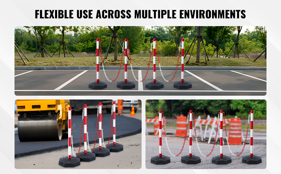 Nämä turvallisuustolpat ja ketju soveltuvat esimerkiksi varoitus- ja rajausalueiden luomiseen sekä jalankulkijoiden ja ajoneuvojen ohjaamiseen. Niitä voidaan käyttää muun muassa rakennus- ja huoltoalueiden vaarakohtien merkitsemiseen tai pysäköintialueiden rajaamiseen.