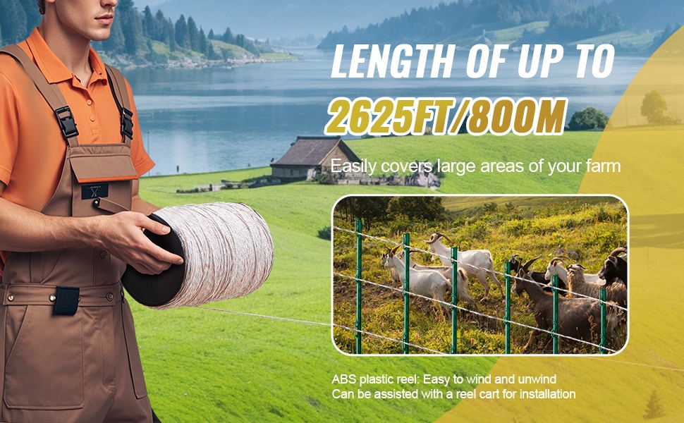 Jopa 1640ft/500m pituutensa ansiosta aita soveltuu laajojen alueiden rajaamiseen. Mukana tuleva ABS-muovinen kela helpottaa langan sisään- ja uloskelamista, ja asennuksessa voidaan käyttää myös kelavaunua työn nopeuttamiseksi.