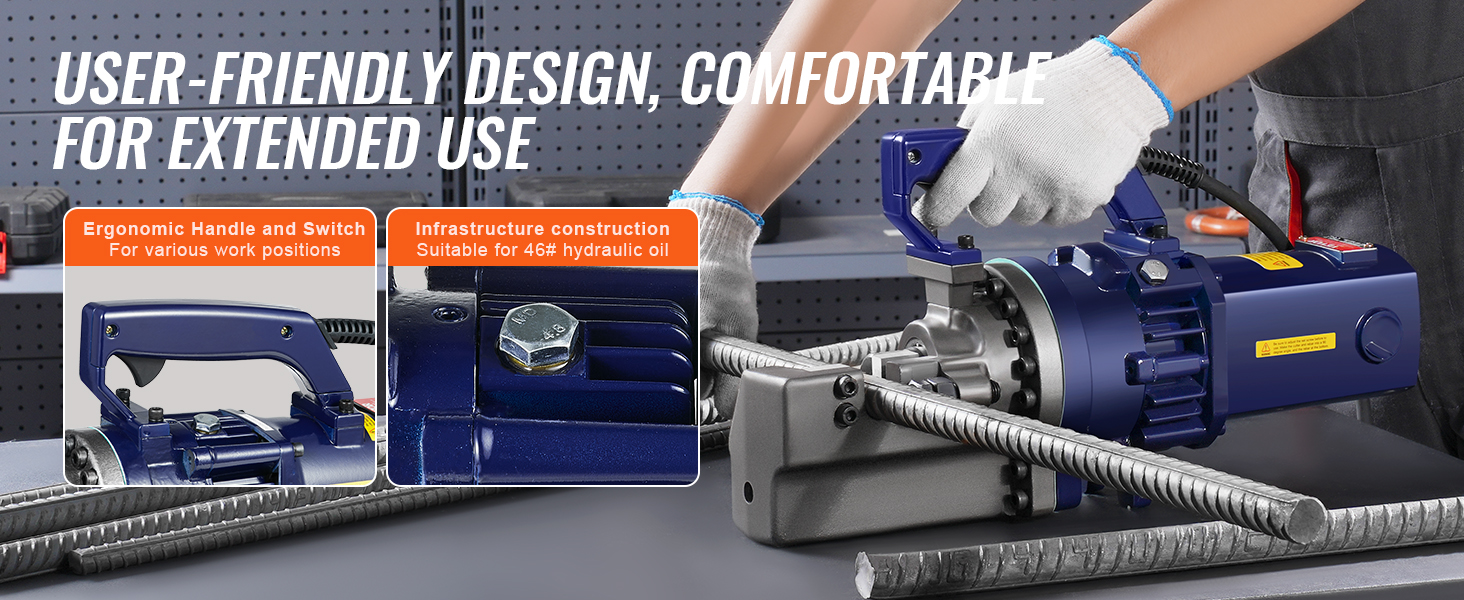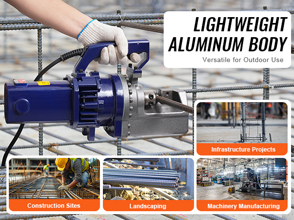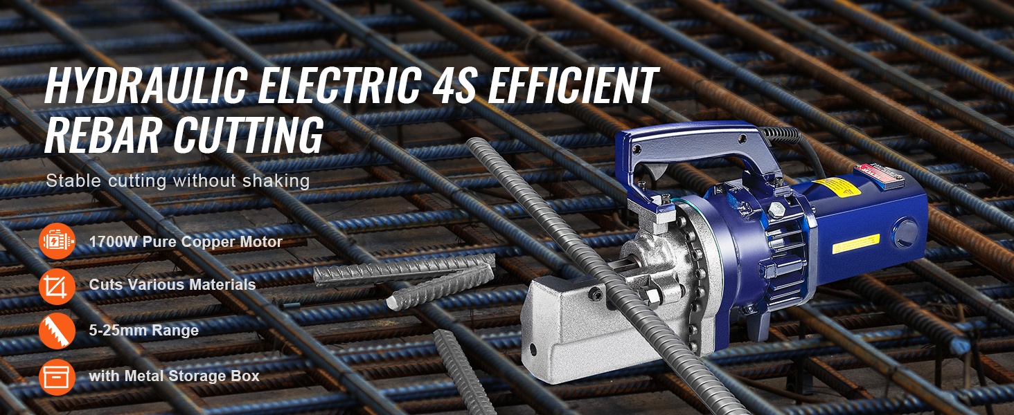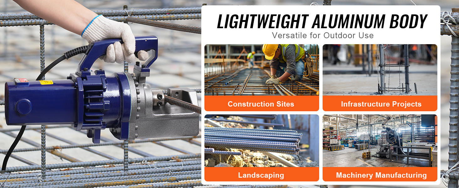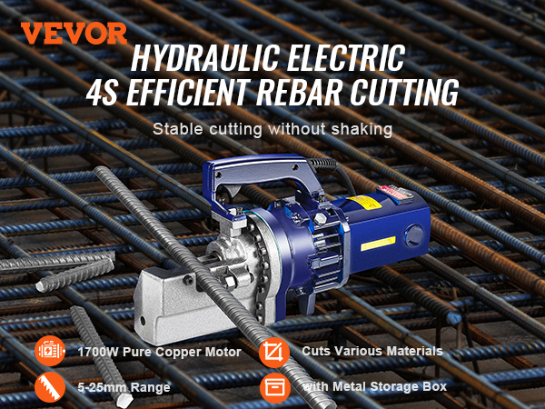 - Tehokas 1700W sähköhydraulinen leikkuri jopa (#8) raudoitustangoille (5–25 mm).