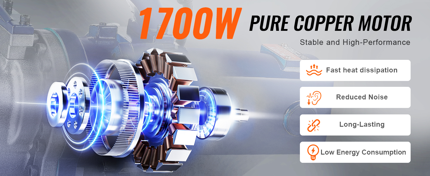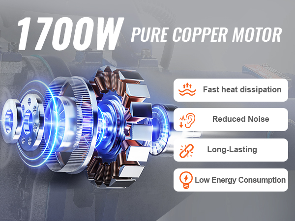 - Puhtaasta kuparista valmistettu moottori, joka tarjoaa vakaan tehon ja pidemmän käyttöiän.