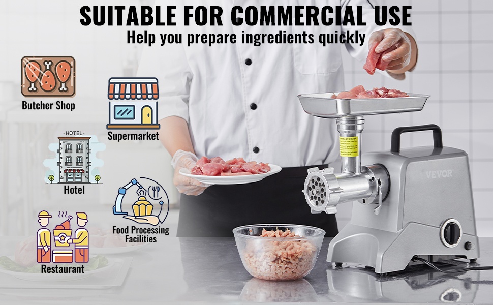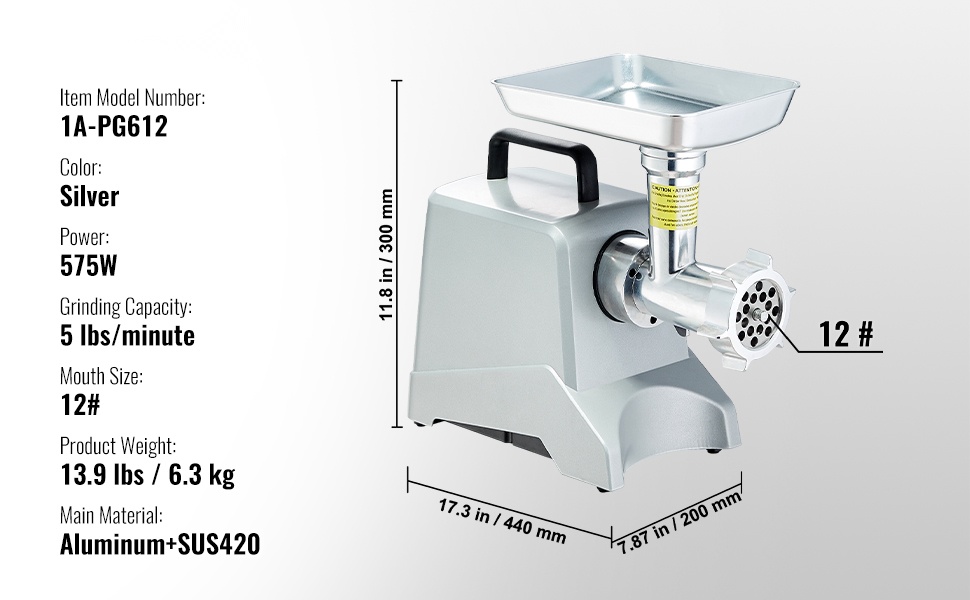 Tämä sähköinen lihamylly helpottaa jauhelihan ja makkaramassojen valmistusta kotona. Tehokas moottori, kestävä alumiinirunko ja monipuoliset lisävarusteet tekevät työskentelystä nopeaa ja siistiä.