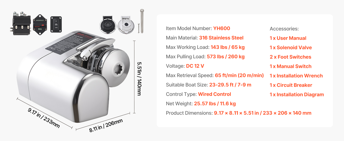 Vinssi tuottaa 143 lbs pitovoiman, joka auttaa pitämään ketjun tiukkana ja turvallisesti paikallaan. Näin vältetään lipsuminen ja vene pysyy vakaammin valitussa ankkuripaikassa.