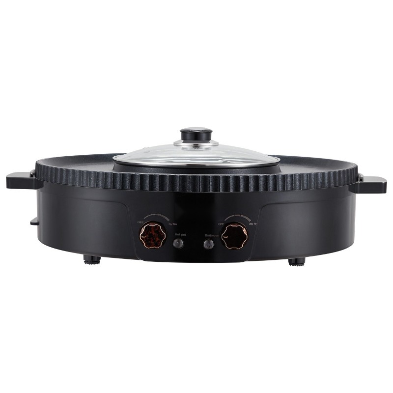 Laitteessa on kaksi erillistä säätönuppia, joiden avulla voit ohjata grillin ja hot pot -padan lämpötilaa toisistaan riippumatta. Sekä miedon että korkean lämmön säätö on helppoa, ja voit mukauttaa lämmön eri ruokalajeille ilman, että toiminnot vaikuttavat toisiinsa.