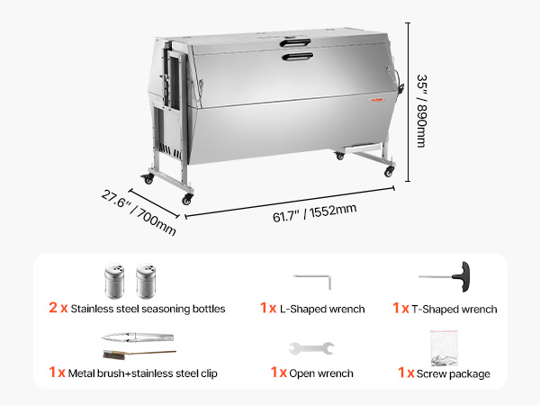 Grillin kokonaiskantavuus on 130 kg, joten se pystyy pyörittämään kokonaisia sioita, lampaita, vuohia tai useita suuria lihapaloja.