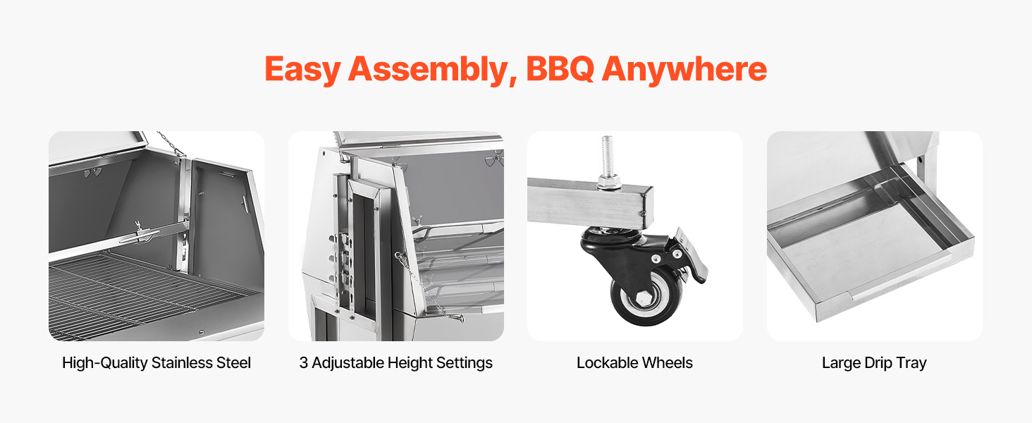 Tämä hiiligrilli grillivartaalla on suunniteltu kokonaisille eläimille ja isoille lihapaloille. Ruostumattomasta teräksestä valmistettu rakenne kestää korkeat lämpötilat, on helppo puhdistaa ja sopii hyvin pihagrilliin, mökille ja leirintään.