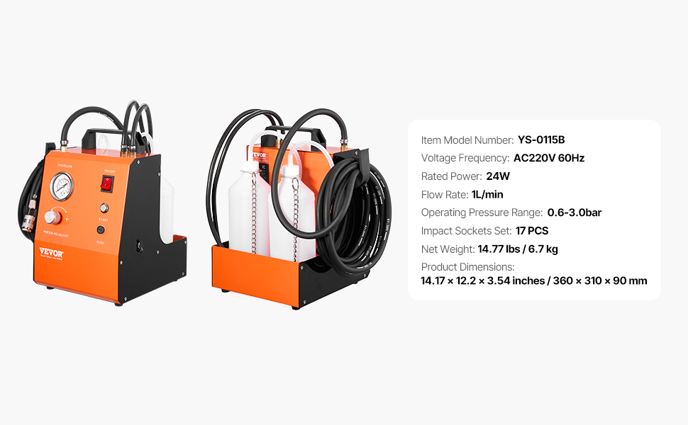 Sarja sisältää 1 pääyksikön, 2 x 1L säiliötä, 17 sovitinta ja 2 virtajohtoa. Yksi liitin ja 16 erilaista sovitinta sopivat moniin ajoneuvomalleihin, kuten esimerkiksi Mercedes-Benz, BMW, Audi, Tesla, Ford, Subaru, Buick ja useat muut.
