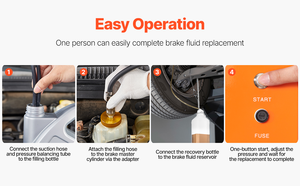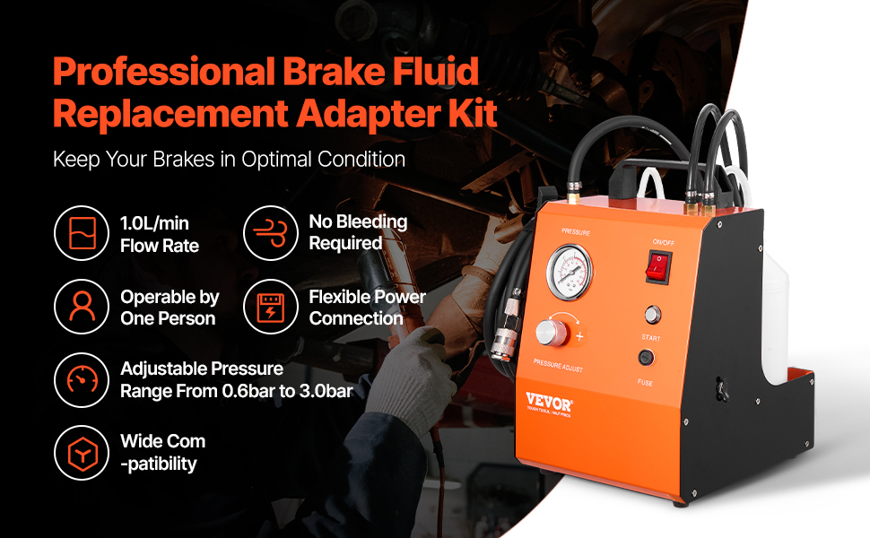 Tällä sähköisellä jarrunesteen vaihtosarjalla jarrujen ilmaus ja jarrunesteen vaihto sujuu tasaisesti ja ilman ilmakuplia. Sisäänrakennettu ilmapumppu ja säädettävä paine mahdollistavat turvallisen ja hallitun työskentelyn erilaisissa ajoneuvoissa.