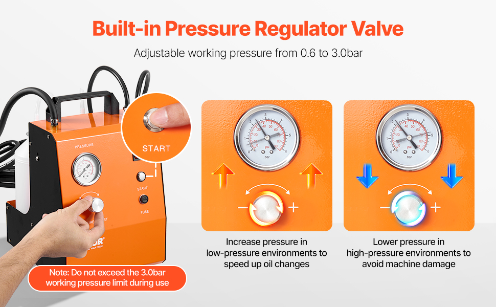 Työpaine on säädettävissä välillä 0,6–3,0 bar, eikä sitä tule ylittää 3,0 bar.