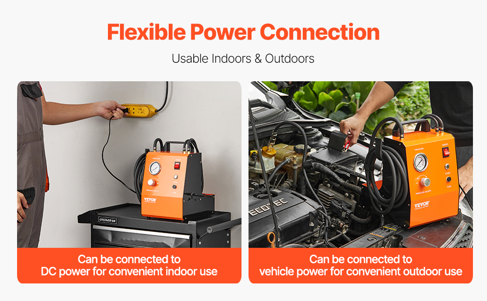 Sähköinen jarrunesteen vaihtolaite tukee sekä 12V akkua että 110V/220V verkkovirtaa. Näin sitä voidaan käyttää sekä sisä- että ulkotiloissa, ja virranlähde voidaan valita työympäristön mukaan.