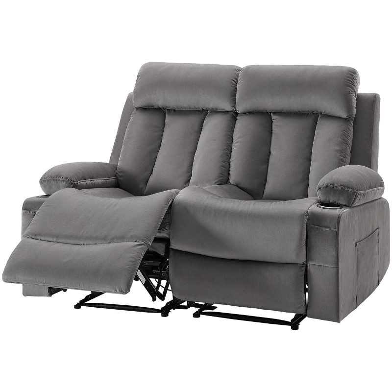 Sähköinen kahden hengen lepotuolisohva lämmityksellä ja hieronnalla, samettiverhoilu, USB-portit, mukitelineet, harmaa